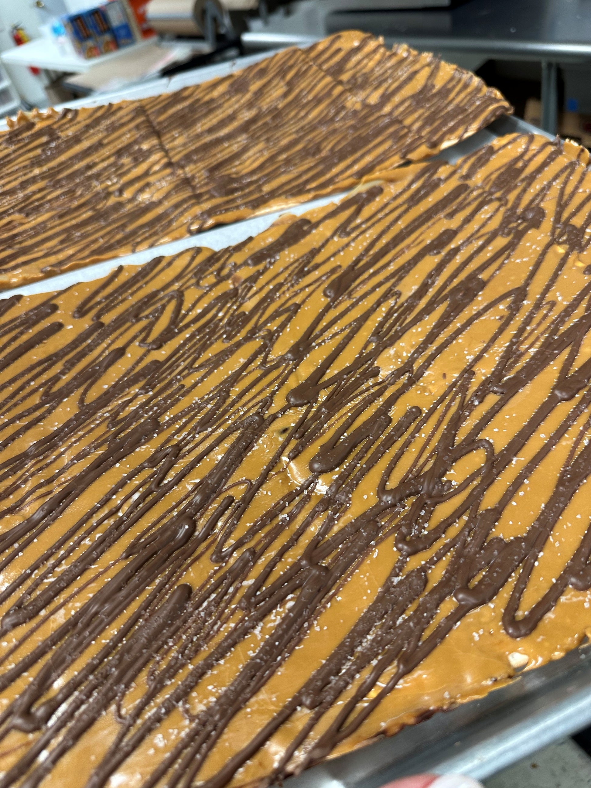 Once you start...you will not be able to stop eating this Specialty Toffee. Our Signature buttery toffee is poured on top of matzo. We then drizzle it with milk chocolate and give it a sprinkle of sea salt! Not your run of the mill Passover dessert. Great snack or why not gift it?